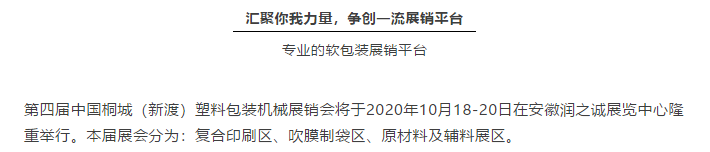第四屆桐城(新渡)塑料包裝機(jī)械展銷會